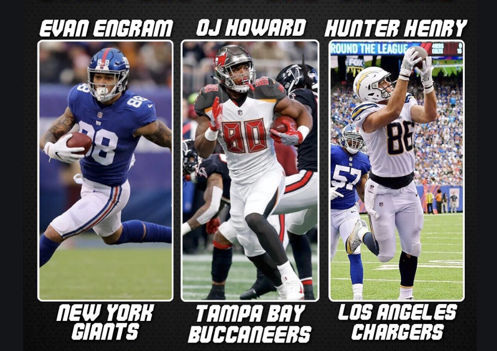 Engram is going to get a lot more targets this year as Odell Beckham Jr. is off the team. Engram is also healthy again which should make him better anyway but he was a fantastic TE option in 2017 and he should be even better than 2017 if healthy. Hunter Henry is back after recovering from a torn ACL and he should be getting a boost in targets as Antonio Gates is no longer on the team, and deep threat Tyrell Williams is gone as well. We saw the chemistry between Rivers and Henry before the injury and the talent Henry has, he should bounce back well. Howard was good in the games he was healthy as Jameis Winston loves his tight ends. He will definitely be at the top in touchdowns for tight ends and have a nice year.